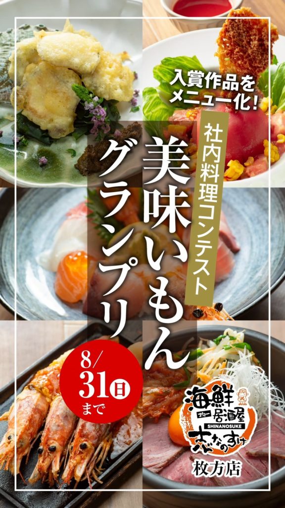 社内料理コンテスト入賞作品が期間限定でメニュー化!★志なのすけ 枚方店 志な乃亭グループで、去る6/26に開催された社内料理コンテスト 「美味いもんグランプリ」…