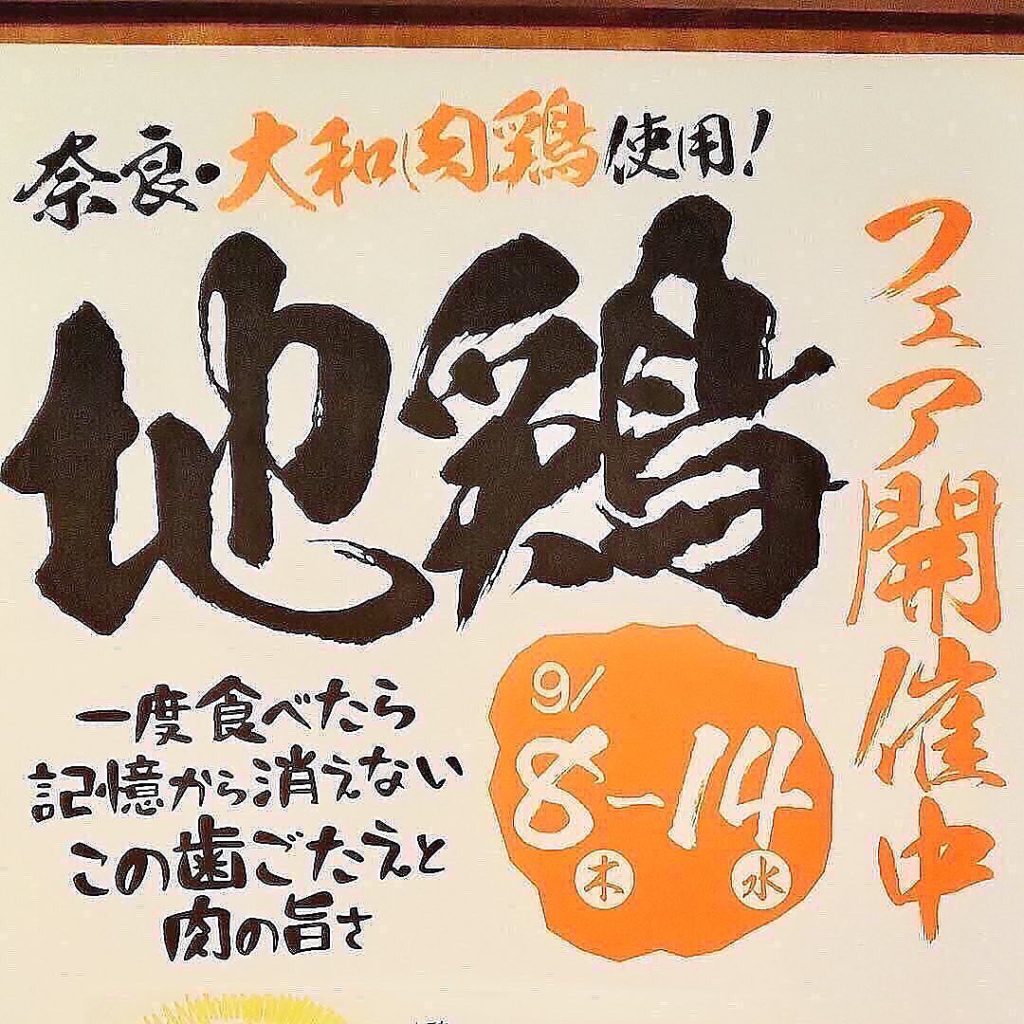 #地鶏フェア 開催9月8日~14日 奈良・飛鳥の「#大和肉鶏 」を使った地鶏フェアを1週間やってます♪ この鶏、肉質がしっかりしていて歯ごたえ抜群!肉に含まれる…