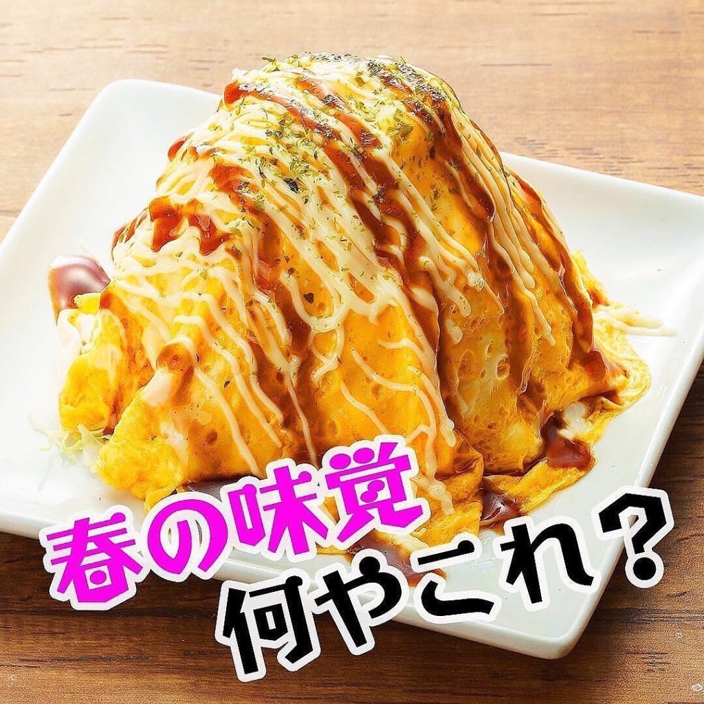 #春の味覚 ★これって何#志なのすけ のお茶目な春メニューご紹介・春のオムキャベサラダ330円玉子のこんもりお山の中は新鮮な春キャベツお好みソース&マヨネーズで…