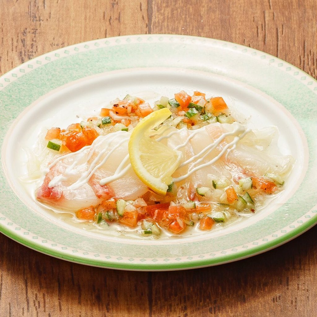 【枚方×均一居酒屋】春らんまん/志なのすけ枚方店 春の味覚をあれこれ揃えましたみ~んな330円です! 真鯛カルパッチョ/野菜たっぷりのラビゴットソースで召し上が…
