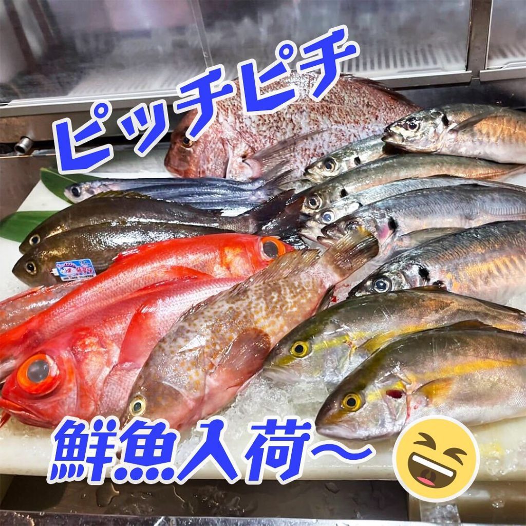 今週の鮮魚がどど~んと入荷! 1本売りで姿造り、焼き、天ぷら等お好みの調理法でお出しします BIG平アジ/BIG丸アジ1280円活〆カンパチ1380円〆イサキ1…