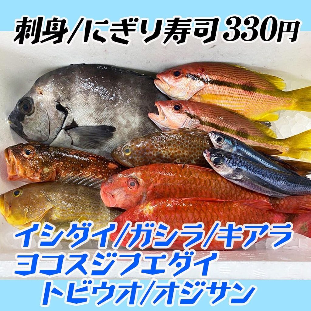 今週も新鮮お魚入荷 小豆島 石鯛・オジサン島根 ガシラ・キアラ長崎 ヨコスジフエダイ福井 トビウオ お造り、にぎり寿司各330円〜 1尾丸ごとでもお売りします2…