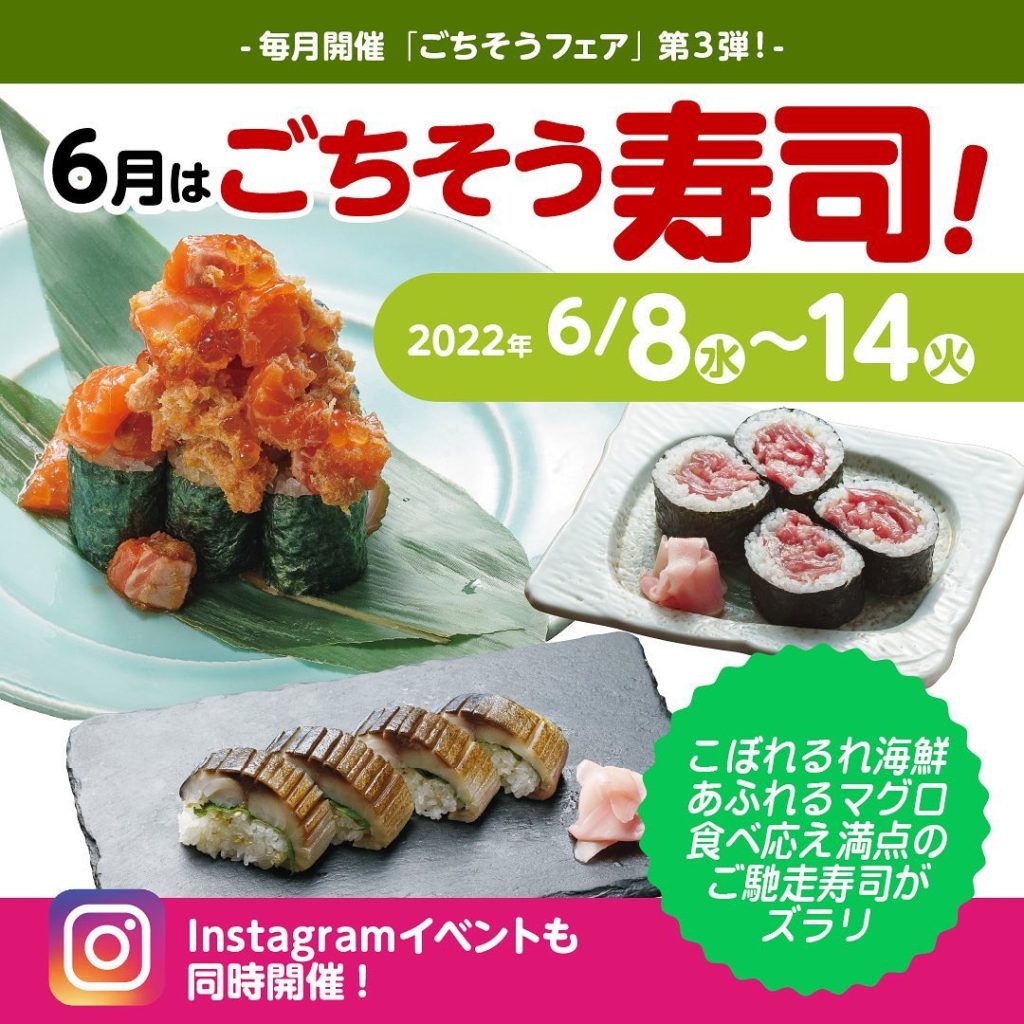 6月8日~14日◆#ごちそう寿司 フェア 毎月恒例の「ごちそうフェア」今月はお寿司です♪ ・北海こぼれ寿司980円カニ🦀、サーモン、いくらがどば~とこぼれます!…