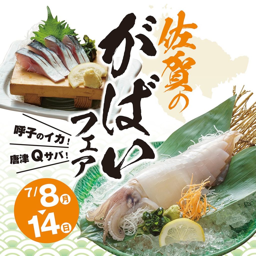 【佐賀のがばいフェア】7/8~14志なのすけ堺東店がばいとは佐賀弁で「すごい」「とても」という意味志なのすけの佐賀フェアではなかなか手に入らない「呼子のイカ🦑」…