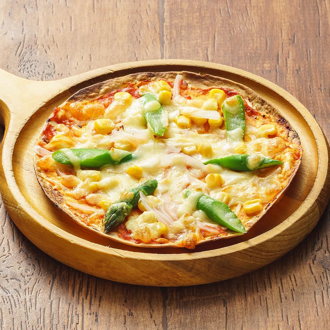 アスパラとコーンのピザ/カラフル野菜をトッピング