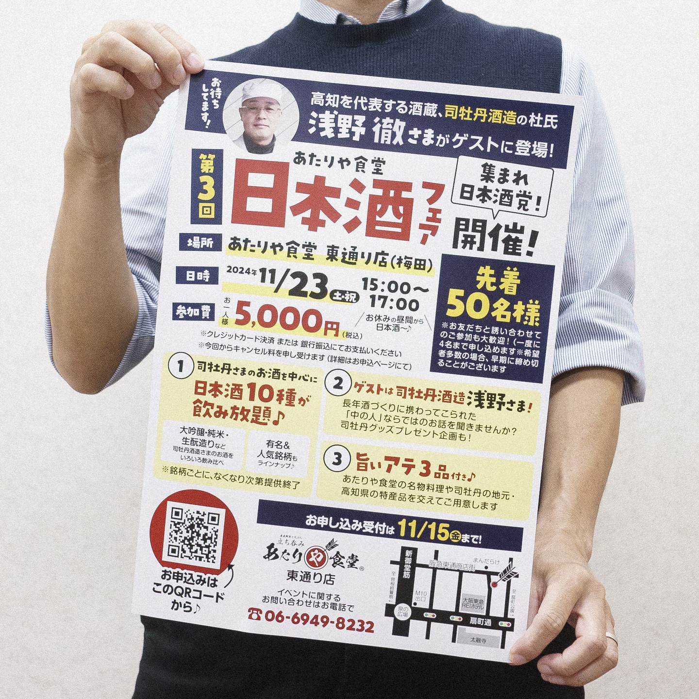 Posted @withregram ・@atariyashokudo 11/23(土・祝)開催!第3回 あたりや食堂 日本酒フェア!@東通り店( @atariyashokudo )続々お申込いただいています!気になっていた方、お申込はぜひお早めに!今回は高知を代表する酒蔵、司牡丹酒造の浅野 徹 杜氏をお迎えします!司牡丹さまのお酒を中心に10種の日本酒が飲み放題!お酒のお供・旨いアテも付いて、参加費お一人様5,000円!お申込・イベント詳細は、専用ページをチェック!東通り店( @atariyashokudo )のプロフリンクの「公式サイト→最新情報」に本イベントに関する記事がございますので、そちらからお進みください!楽しいイベントになるよう、運営スタッフ一同がんばります!皆さまのお申込、お待ちしております!#あたりや食堂#立ち飲み#司牡丹#日本酒フェア#日本酒好きと繋がりたい