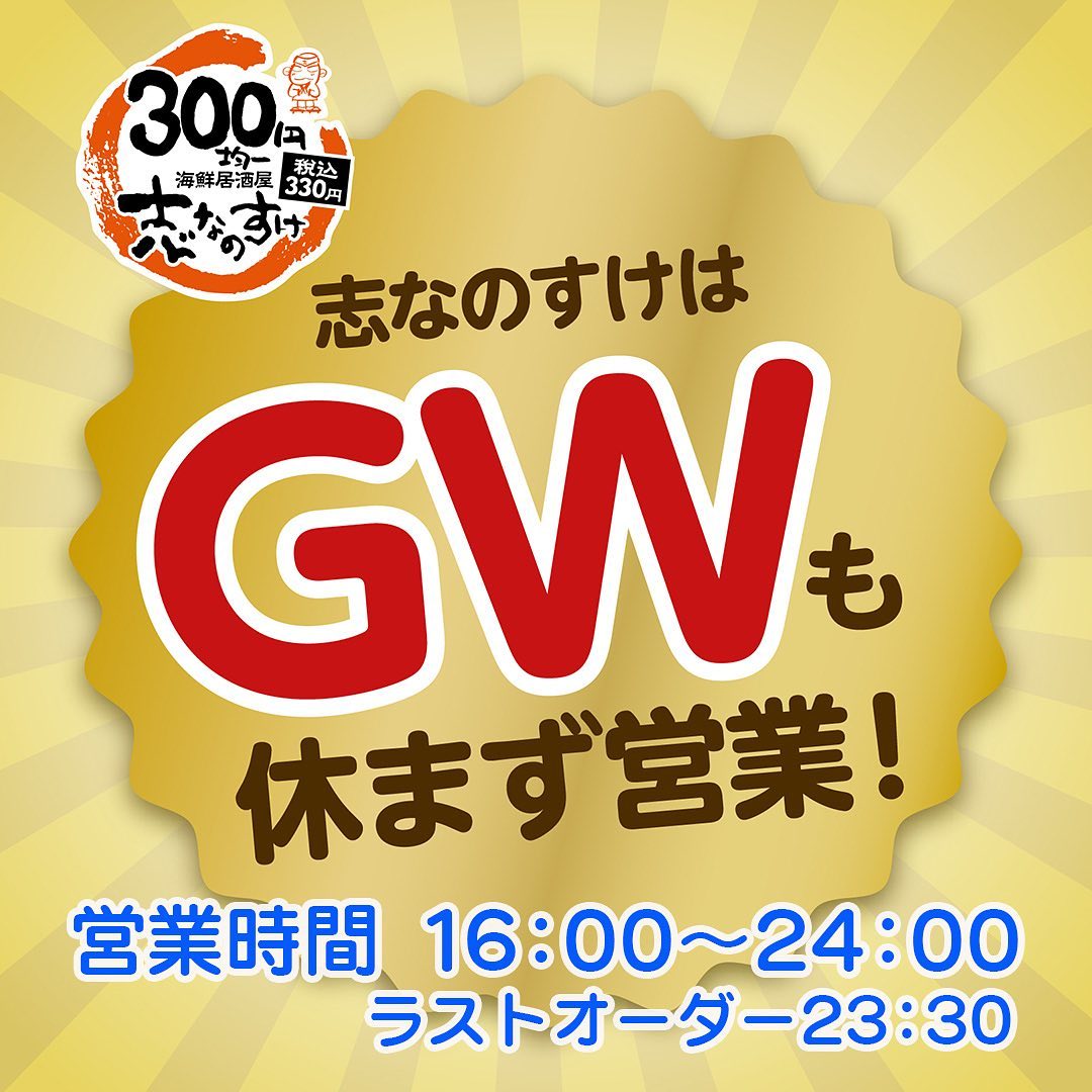 GW通常営業やってます!明日からは楽しいGW♪さぁどこへでかけましょうか🚘#志なのすけ はGWも休まず営業ゴールドステッカー認証店ですので安心してご来店ください大阪府からの要請に応じて「1テーブル4人まで」を実践しているため#志なのすけ庄内店 では1グループ最大60名様までとさせていただいていますご協力をお願いいたします‍刺身も焼鳥も食べ放題!生ビールもハイボールもサワー🥂も飲み放題!の「食べ飲み放題」で楽しい時間をご来店お待ちしております============営業時間 16:00~24:00  ラストオーダー23:30#居酒屋庄内志なのすけ #庄内グルメ #庄内飲み #庄内食べ放題 #個室 #座敷 #大人数ok #食べ飲み放題 #ご予約はハイライトから