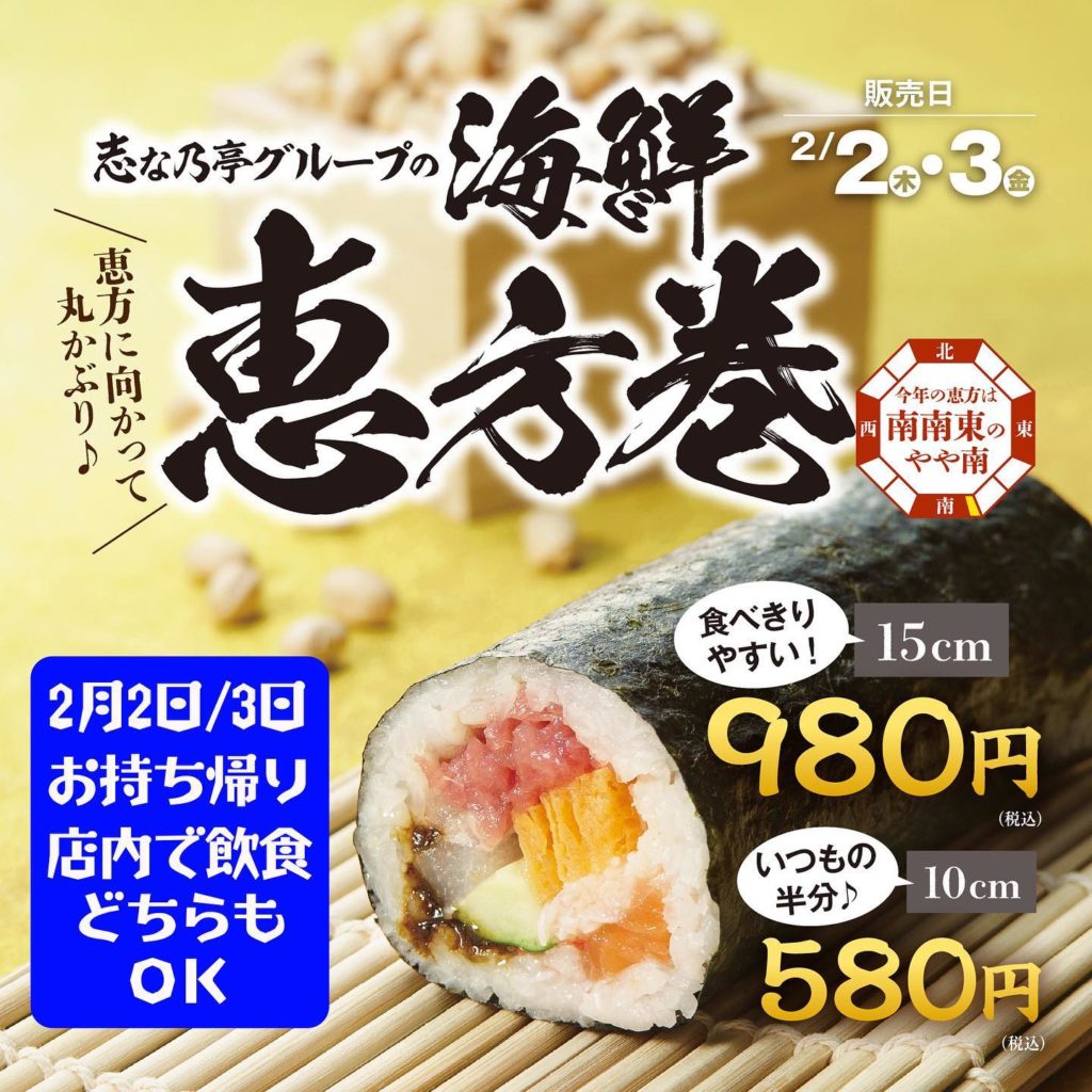 #節分 到来!恵方巻にかぶりつけ! 明日は節分#恵方巻き を食べて今年の幸運や無病息災を願いましょう⛩ #志なのすけ庄内店 の恵方巻は豪華海鮮巻き♪ 本マグロや…